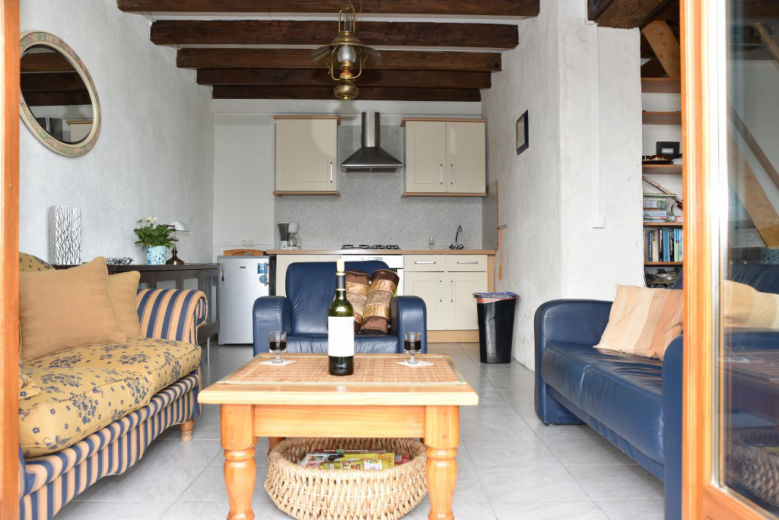 Compleet en gezellig ingerichte gite, ook geschikt voor minder-validen, met 1 slaapkamer op de begane grond; deze slaapkamer is voorzien van een senioren bed en een elektrisch hoog/laag éénpersoonsbed. Woonkamer met dubbele tuindeuren naar het zonnige terras. In de woonkamer een gezellige eethoek, verder een ruime zithoek met 2 banken.