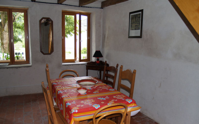 Compleet en modern ingericht. Op de begane grond een grote woonkamer met mooie authentieke Franse tomettes op de vloer. Gezellige eethoek met ruime zithoek. De bank is geschikt als slaapplaats. In de woonkamer is nog de oorspronkelijke schouw/schoorsteenmantel aanwezig, waarin nu de houtkachel staat.